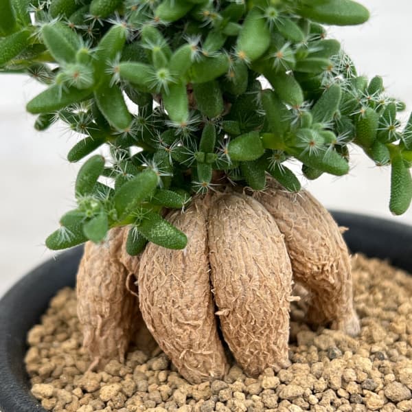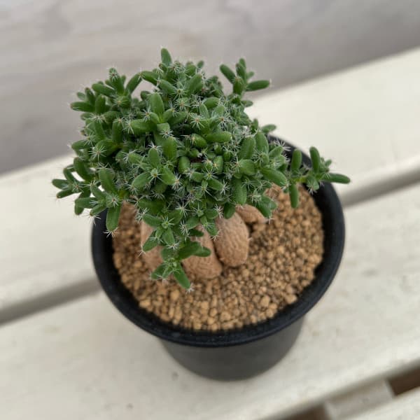 トリコディアデマ姫紅小松は塊根性の小型種で、粒状の多肉質の葉をたくさんつけます。その草姿から天然の盆栽とも呼ばれており、手間をかけずに盆栽のような樹形になります。根上がりがとてもきれいな逸品です。★時期により葉姿が異なります★