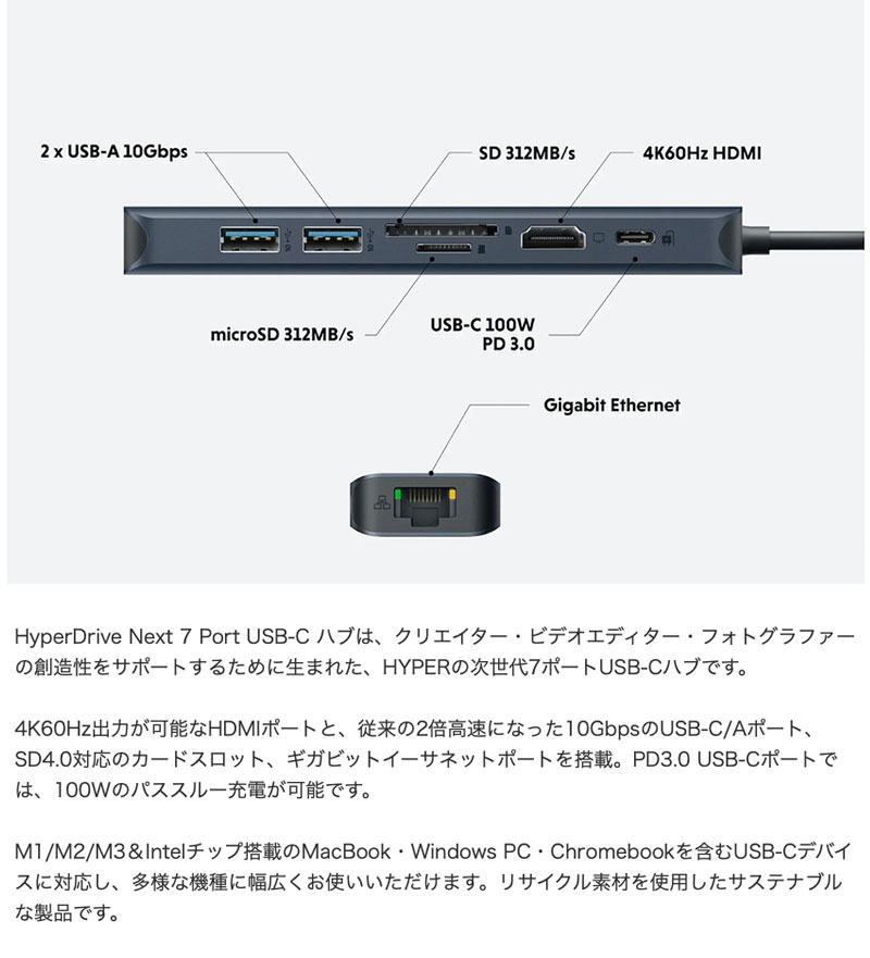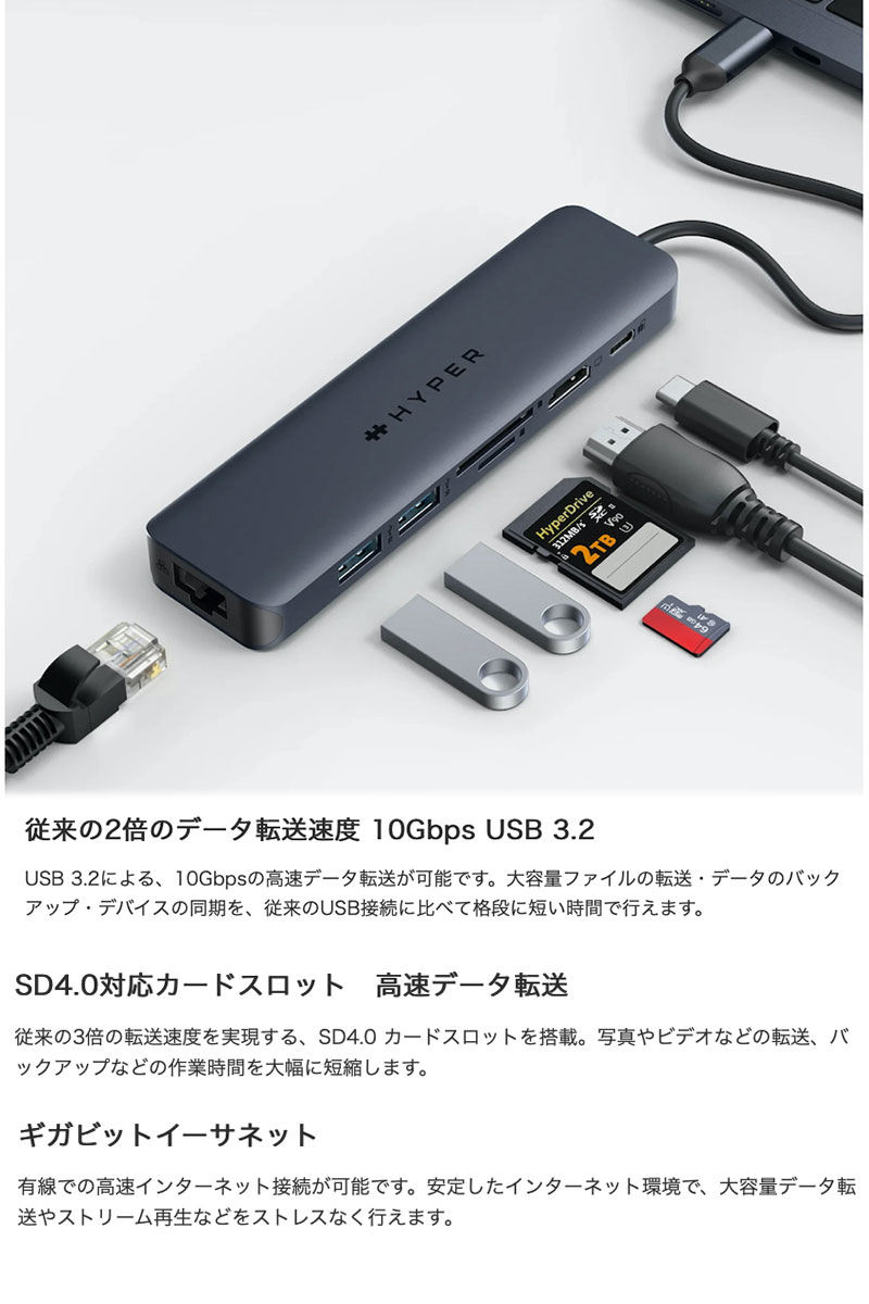 HyperDrive Next 7 Port USB-C ハブは、クリエイター・ビデオエディター・フォトグラファーの創造性をサポートするために生まれた、HYPERの次世代7ポートUSB-Cハブです。