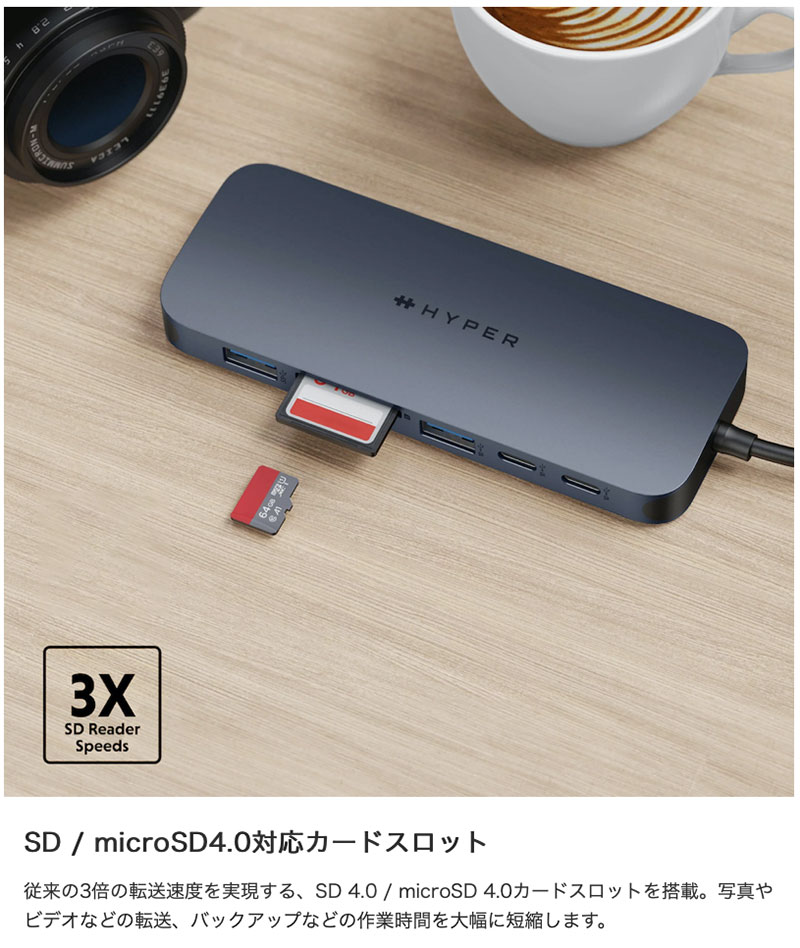 従来の3倍の転送速度を実現する、SD / microSD4.0カードスロットを搭載。写真やビデオなどの転送、バックアップなどの作業時間を大幅に短縮します。