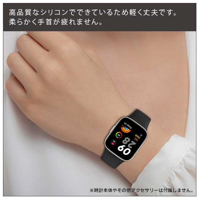 Xiaomi Redmi Watch 3(シャオミ Redmi ウオッチ 3)やXiaomi Mi Watch Lite 3(シャオミ ミー ウォッチ ライト 3)のシンプルなシリコンバンド(シリコンベルト)です。手首のサイズが、 約14cmから約22cmまでの方にお勧めです。