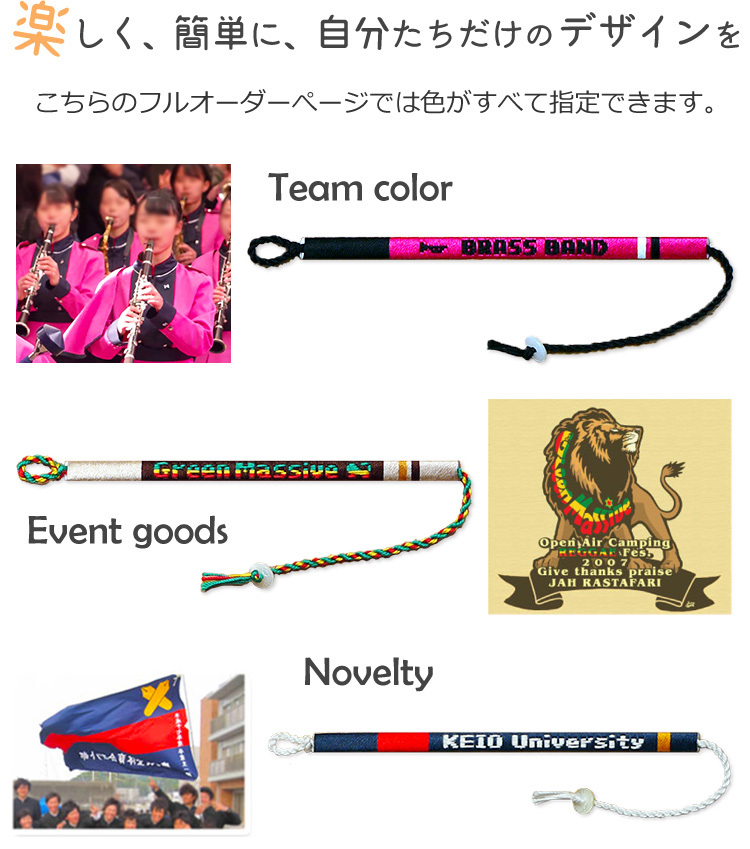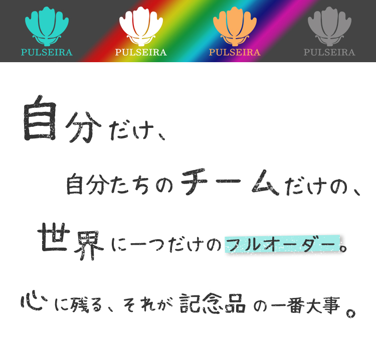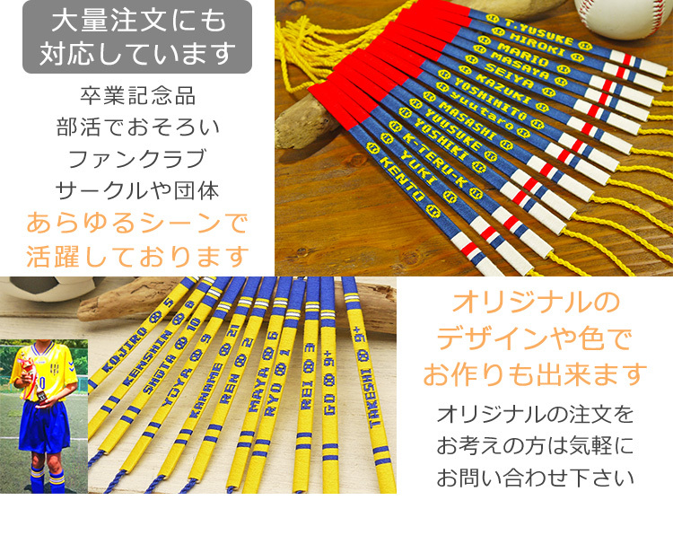フルオーダーページでは自由に色がデザイン出来ます。あなただけのチームカラーやユニフォームカラーでお作りいたします。すべて職人による手作業で作り上げております。