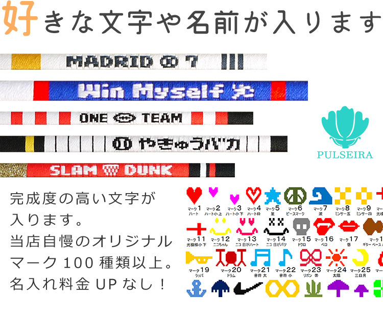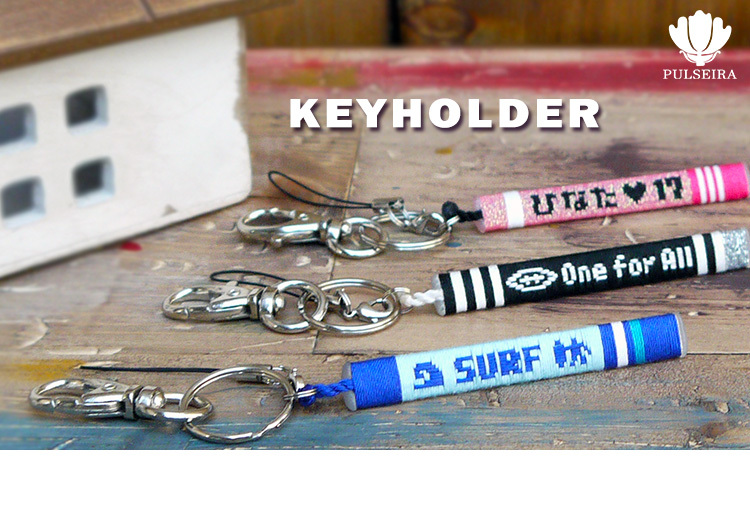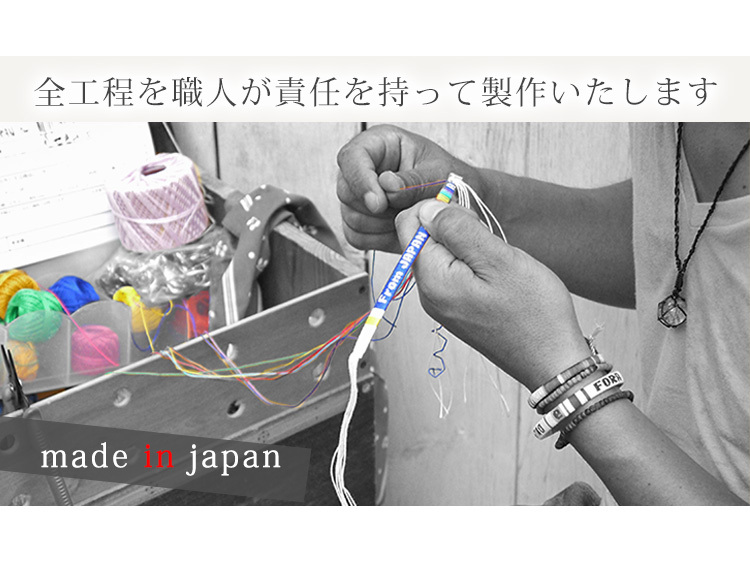 プルセイラとは、糸と芯を使い文字を編み込んだアクセサリーです。