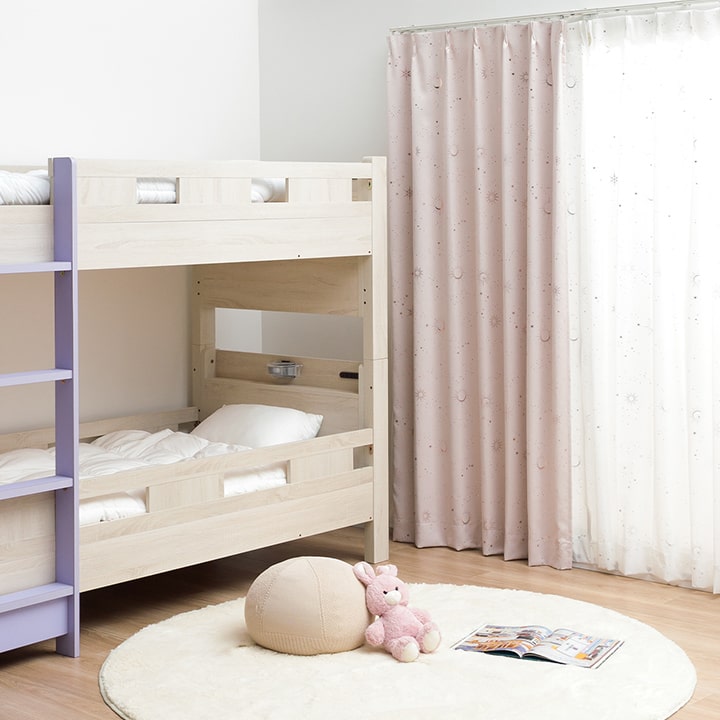 ・おひさまの光を遮り、良質な睡眠をサポートする遮光カーテン。ネイビーは1級遮光、アイボリー、ピンクは2級遮光です。外の光が気になって眠れない方は1級遮光、朝の光を程よく感じたい方は2級遮光がおすすめです。光だけでなく、外からの視線も遮り、プライバシーを守ります。