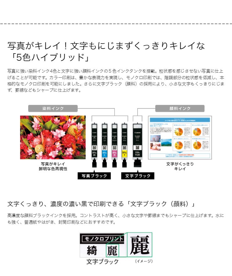 主な付属品:インクタンク/カートリッジ ※10:セットアップ用インクタンク(BCI-351C/351M/351Y/351BK/350PGBK)