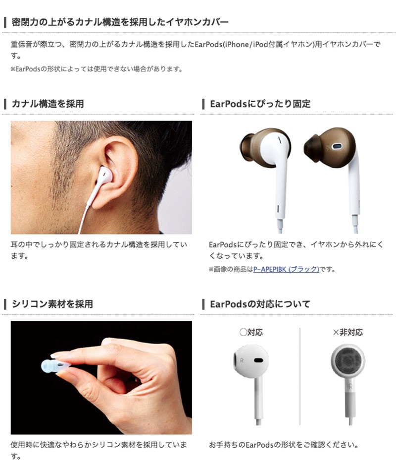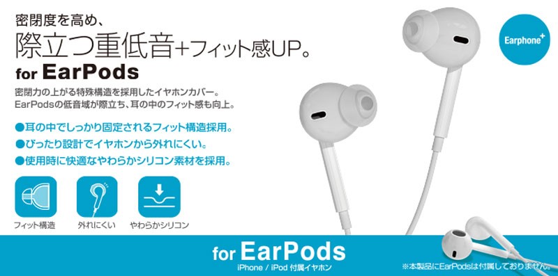 重低音が際立つ、密閉力の上がるカナル構造を採用したEarPods(iPhone/iPod付属イヤホン)用イヤホンカバーです。