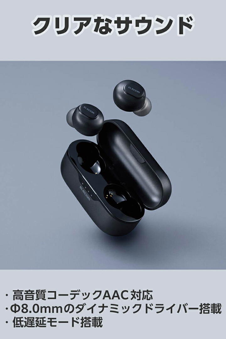 エレコム Bluetoothイヤホン 完全ワイヤレス ヘッドホン ブルートゥース 完全ワイヤレス AAC対応 低遅延モード ブラック┃AMA92003